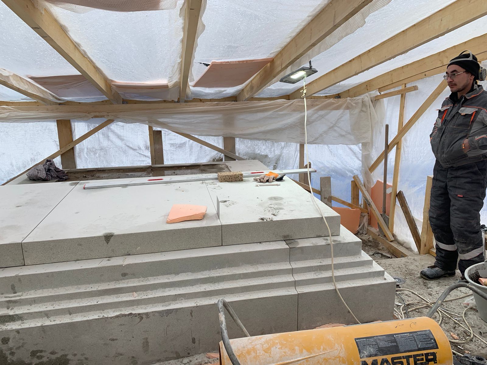 В настоящее время активно видеться работа по подготовке постамента для памятника и благоустройство территории.