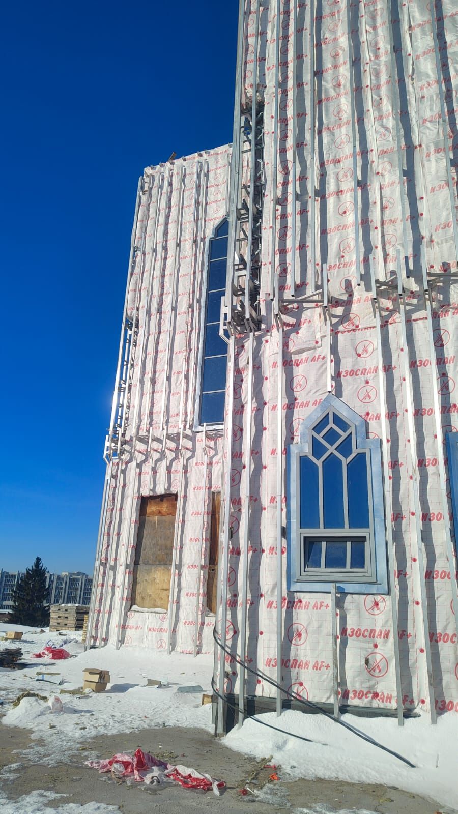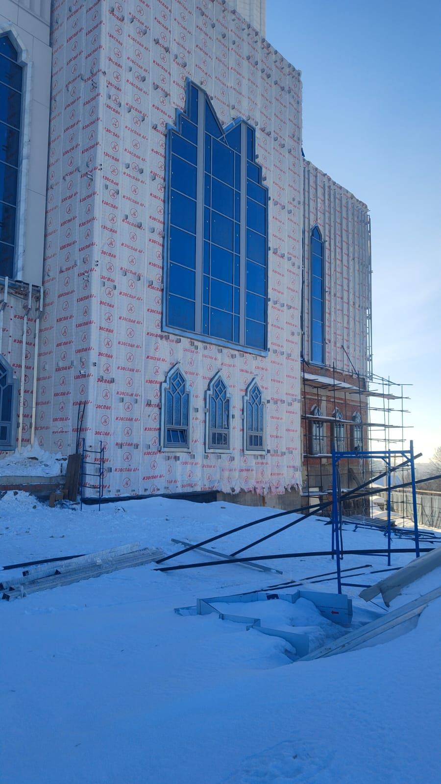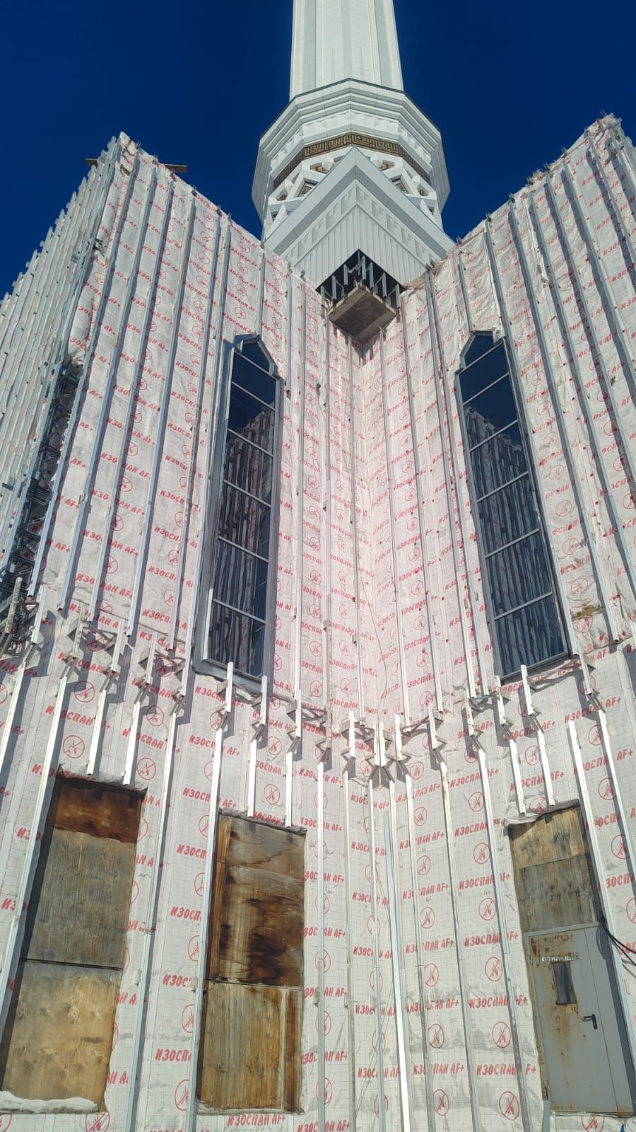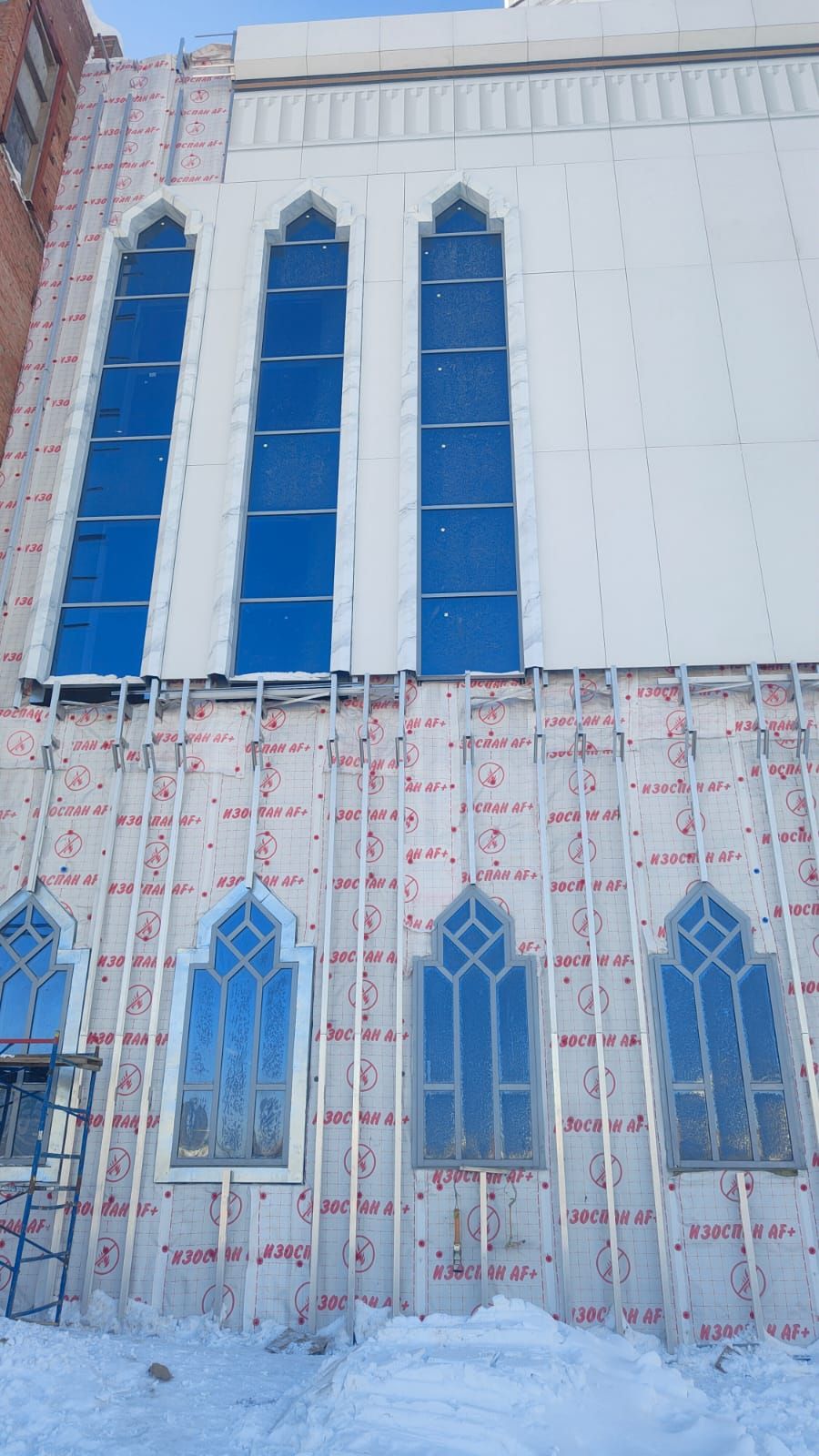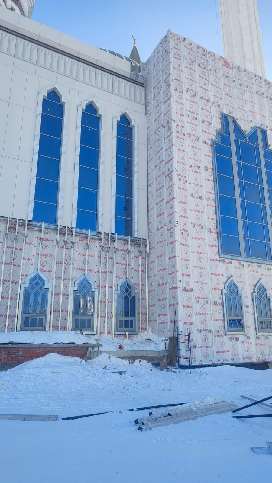 В Уфе продлжаются работы по отделке фасада соборной мечети «Ар-Рахим», так же монтируется декоративная мозаика.